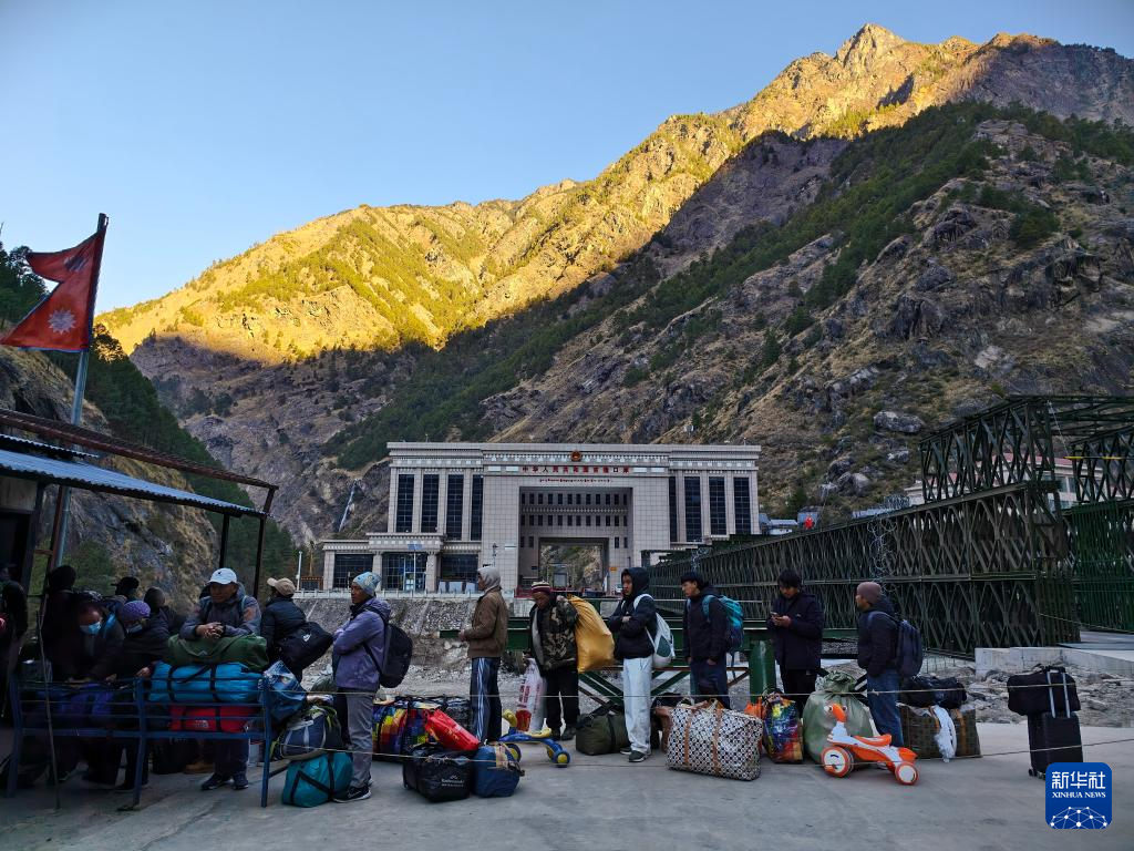 2026年1月1日,在尼泊尔热索瓦口岸,通过热索临时便桥进入尼方一侧的人员正在等待通关(手机拍摄)。