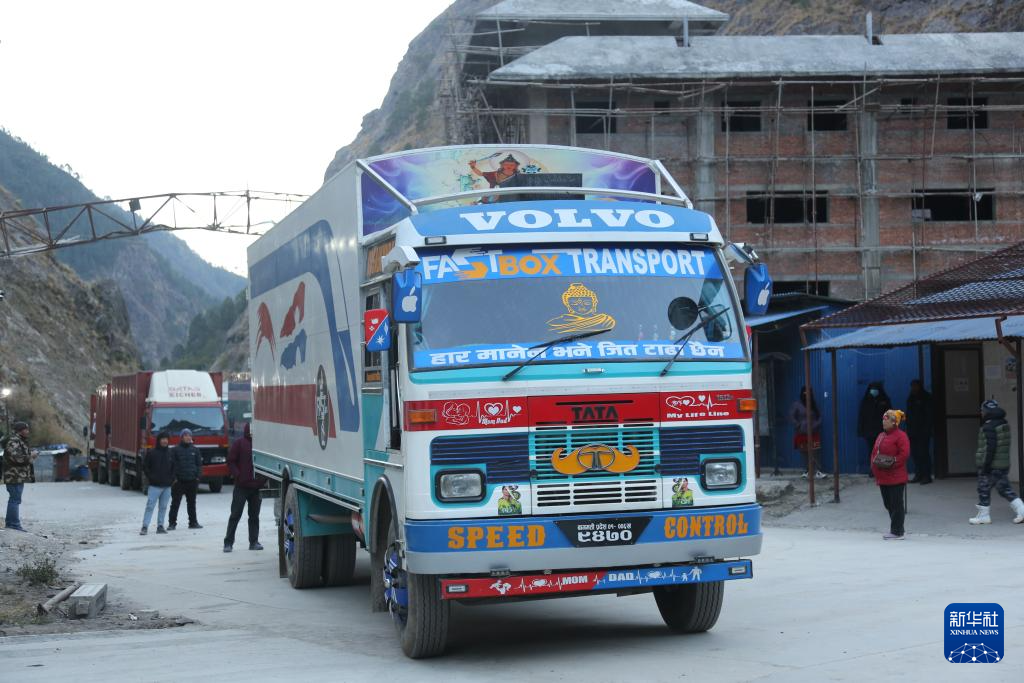 2026年1月1日,在尼泊尔热索瓦口岸,一辆卡车等待通过热索临时便桥进入中国吉隆口岸。