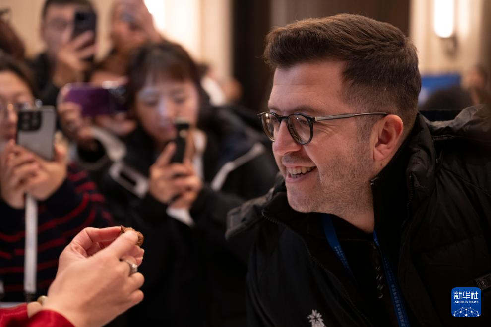 1月7日,参会嘉宾在“世界市长对话·哈尔滨”主对话活动现场观看非遗作品。