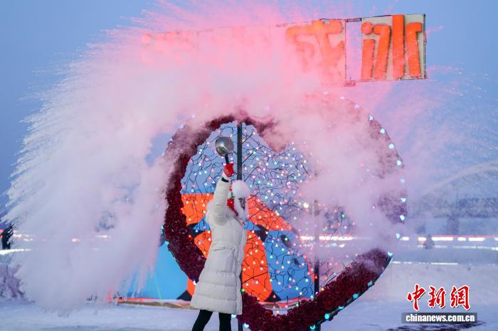 1月11日,黑龙江哈尔滨,游人在松花江冰雪嘉年华体验泼水成冰。当日,哈尔滨天气晴好,市民游客在第八届哈尔滨松花江冰雪嘉年华上体验各类冰雪项目,乐享冰雪之趣。中新社记者 赵宇航 摄