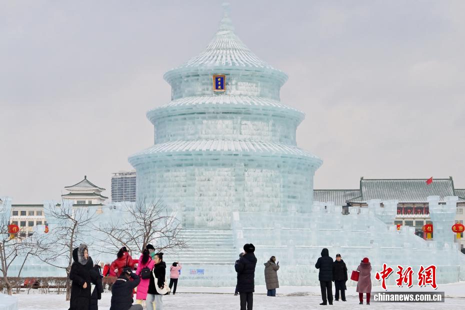 长春冰雕“祈年殿” 引游人打卡