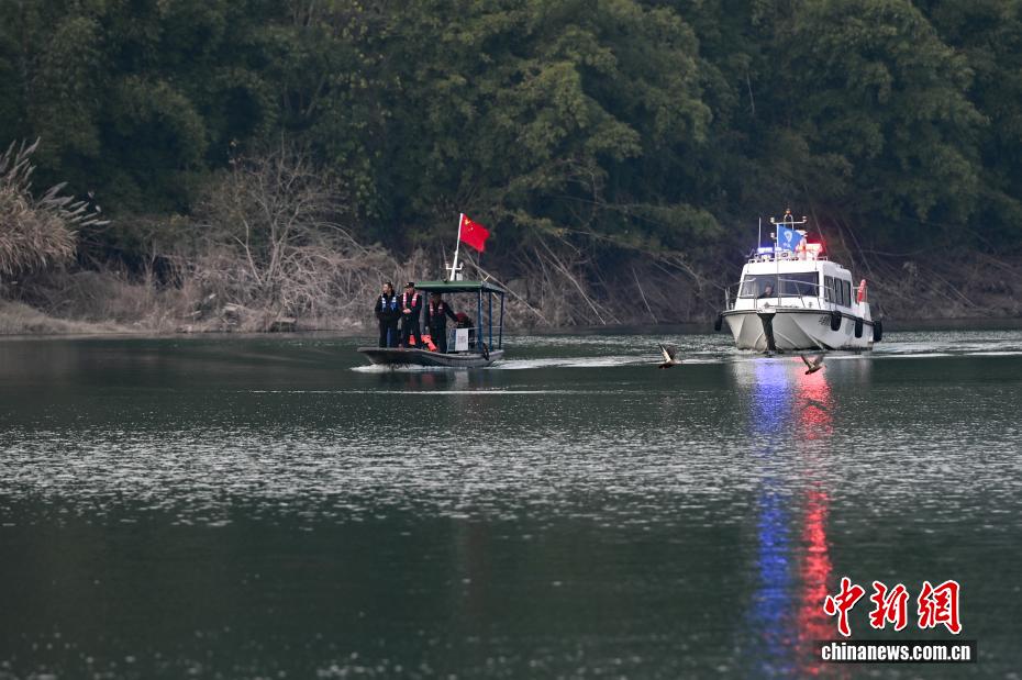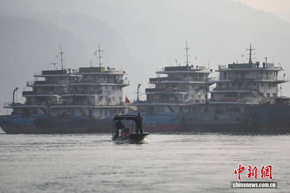 冬日里的三峡库区,青山如黛、碧水东流。位于库区腹心的重庆万州,渔政执法人员联合由退捕上岸渔民组成的护渔队,常态化开展江面巡护,打击非法捕捞和违规垂钓行为,共同守护长江鱼类资源。近年来,为更好地保护长江渔业资源,重庆万州充分发挥退捕上岸渔民熟悉水域环境的优势,积极引导广大渔民参与到渔业资源保护中来,万州区农业综合行政执法支队在重庆全市率先成立护渔队,20名队员实行24小时值守,守护长江重庆万州段80余公里水域。监测发现,长江十年禁渔自2021年1月1日全面启动实施以来,在长江重庆万州段,鱼类种类较禁捕前有明显增加,胭脂鱼、岩原鲤等珍稀鱼类种群数量持续扩大。图为万州护渔队队员与渔政执法人员在长江万州段开展联合巡护。