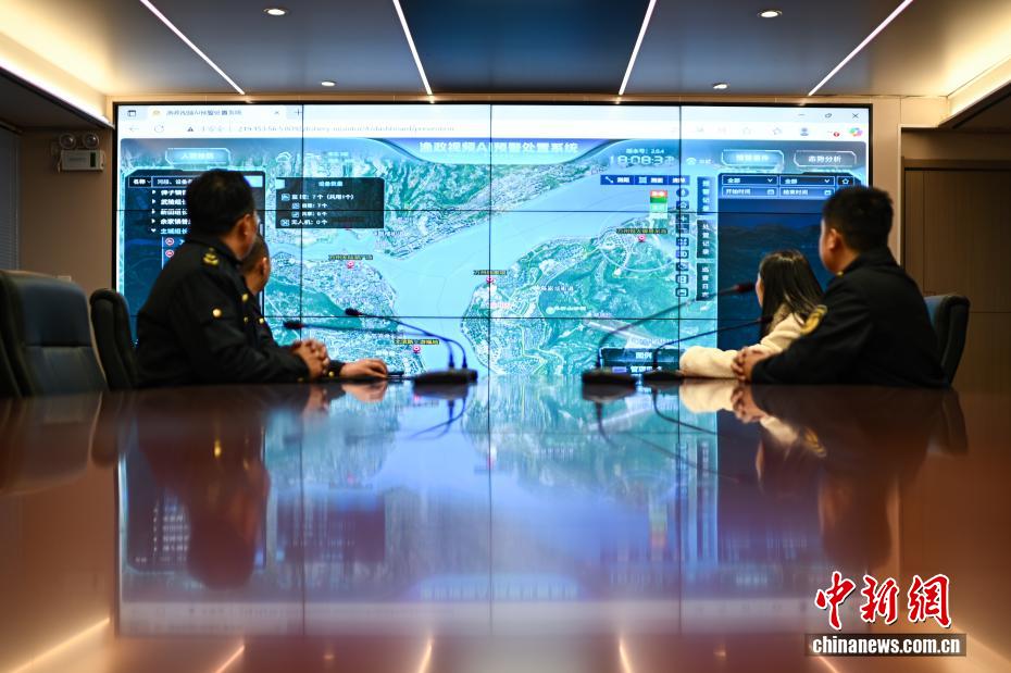 图为万州渔政执法人员与护渔队队员使用“渔政视频AI预警处置系统”对长江水域开展智能监管。