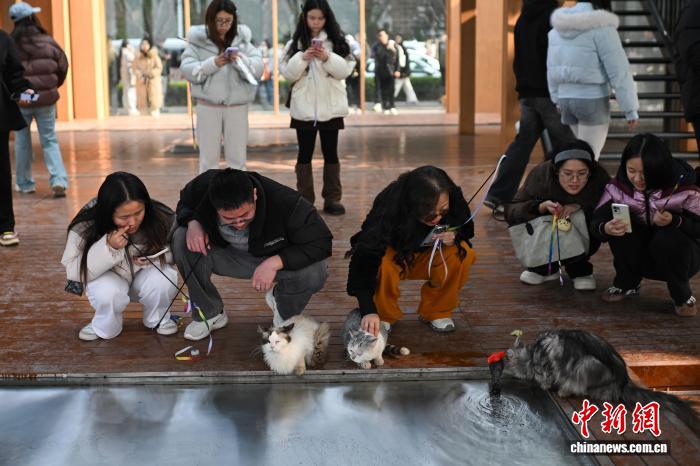 1月13日,游客在重庆萤火虫港湾猫猫主题乐园与猫咪互动。中新社记者 何蓬磊 摄