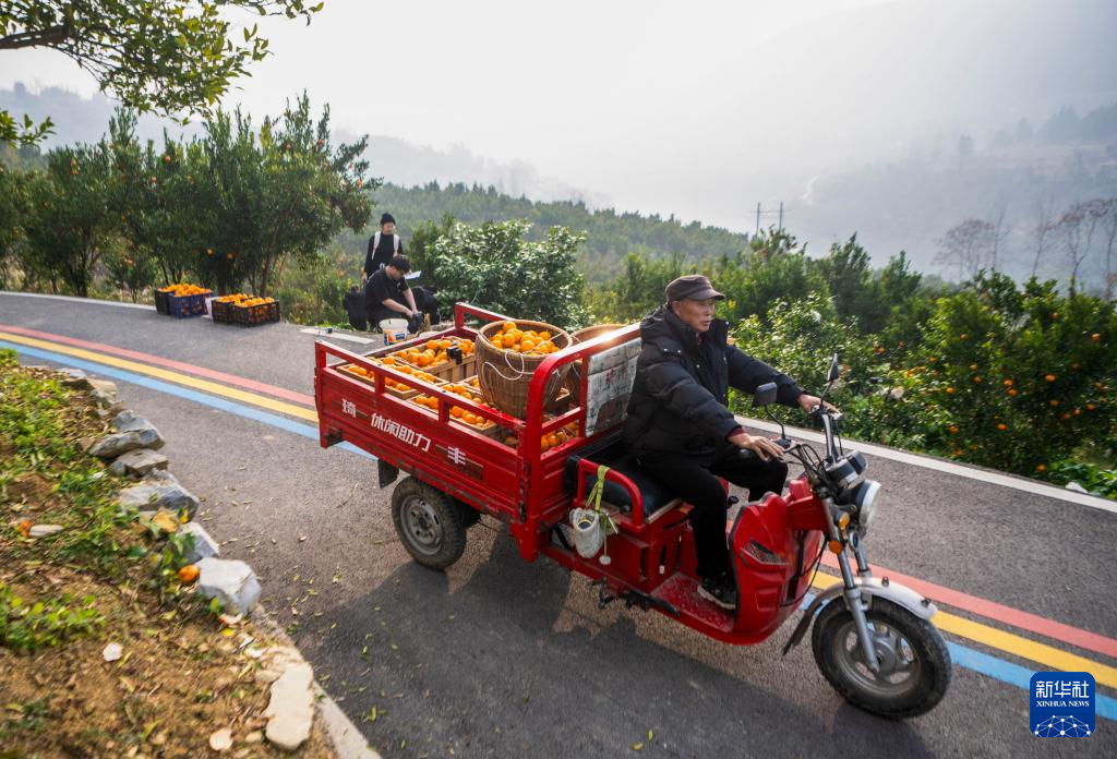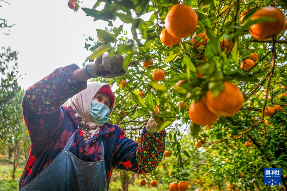 近日,重庆市黔江区阿蓬江沿岸数千亩柑橘林迎来丰收季,当地通过举办采摘体验、线上直播等活动,拓宽柑橘销售渠道,推动柑橘出村进城,有效促进农民增收和乡村产业振兴。