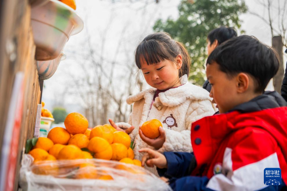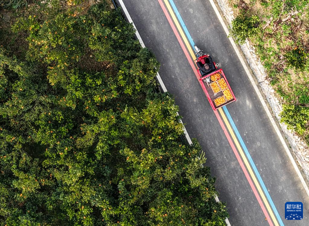 近日,重庆市黔江区阿蓬江沿岸数千亩柑橘林迎来收获季,当地通过举办采摘体验、线上直播等活动,拓宽柑橘销售渠道,推动柑橘出村进城,有效促进农民增收和乡村产业振兴。