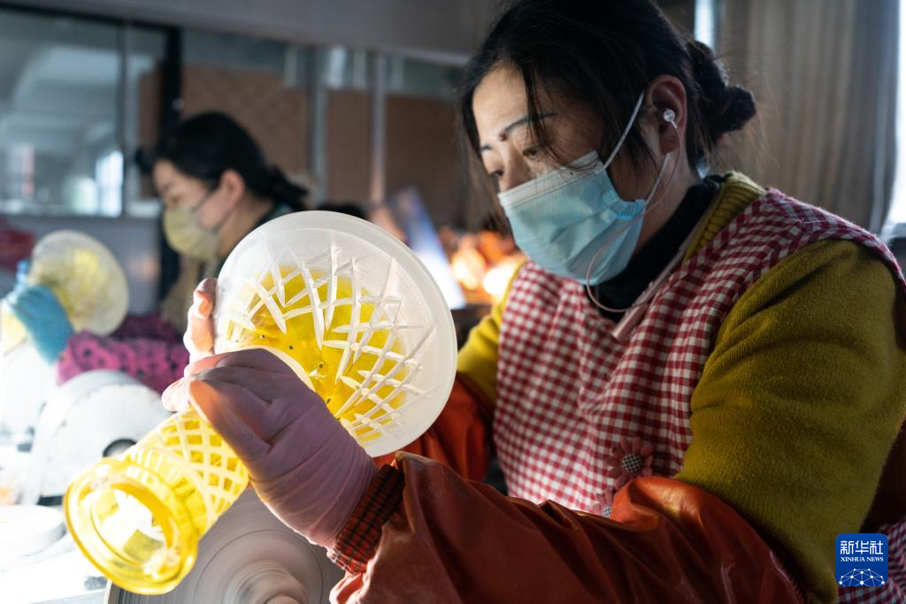 在安徽省天长市石梁镇,工人在制作水烟壶(1月14日摄)。