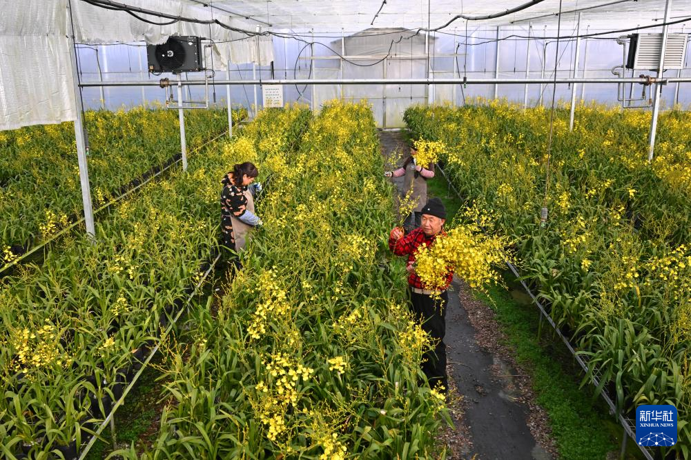 春节临近,年宵花市场持续升温,福建省宁德市周宁县高山冷凉花卉基地迎来采收上市高峰。各花卉企业大棚内,文心兰、大花蕙兰等年宵花卉竞相绽放,工人们忙着采摘、修剪、整形和包装作业,确保节日期间市场充足供应。