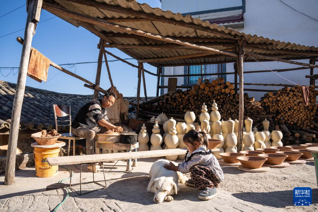 1月22日,村民在云南省临沧市碗窑村制作陶器。