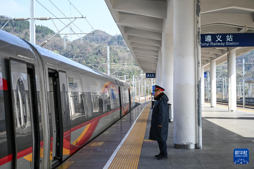 1月26日,贵州遵义开往延安方向的G3360次列车停靠在遵义站站台。