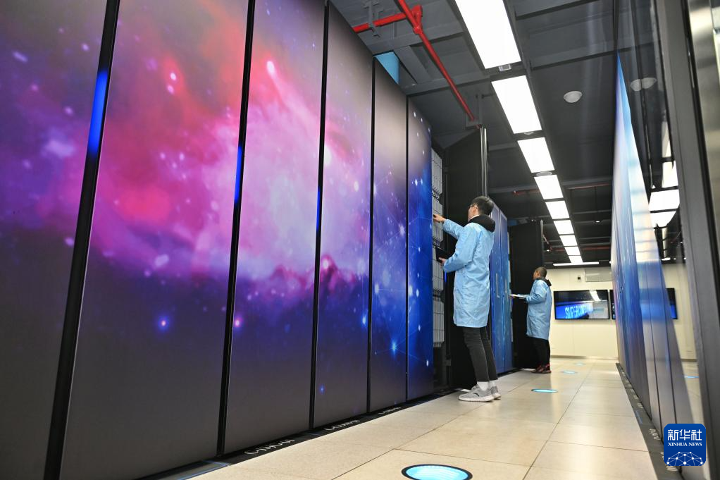 2025年1月10日,科研人员在四川省成都市天府新区西部(成都)科学城的国家超级计算成都中心巡检机房设备。