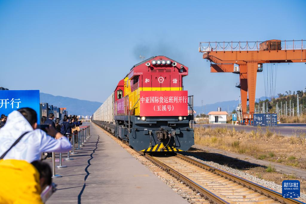 1月26日,中老铁路中亚国际货运班列在云南玉溪研和站发车。