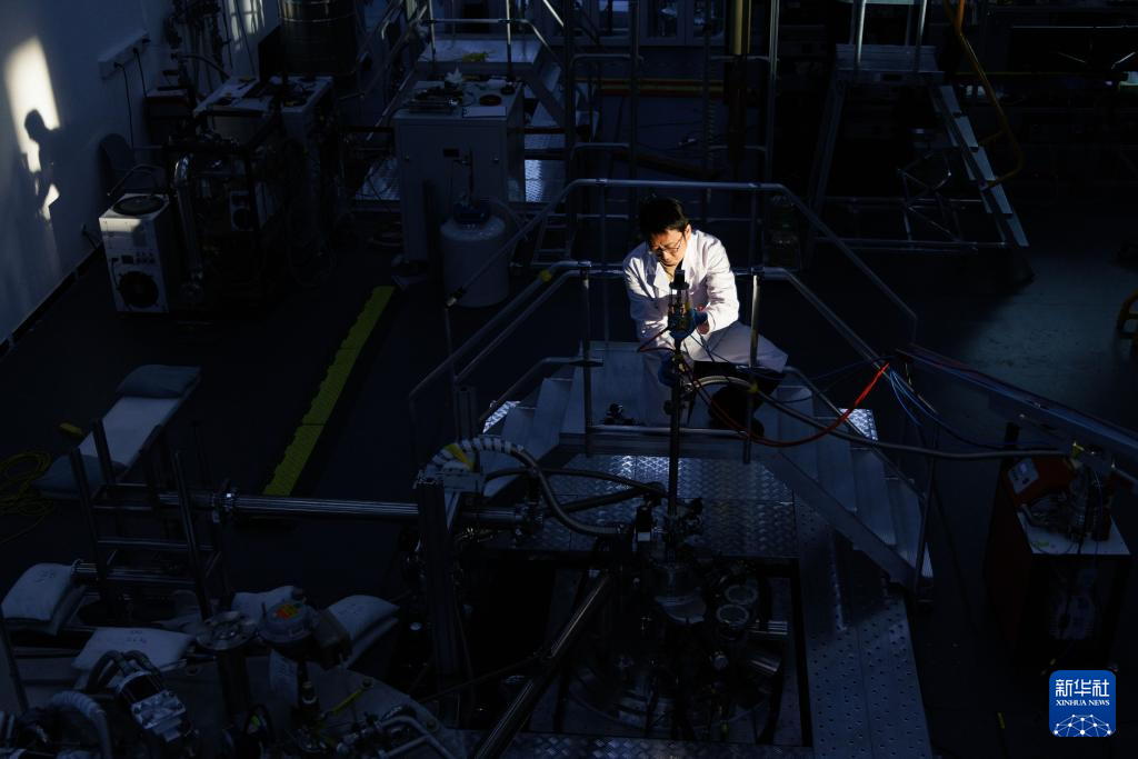 1月26日,在位于北京怀柔的中国科学院物理研究所综合极端条件实验装置极低温强磁场量子振荡实验站,实验站负责人、副研究员李岗在放置实验测量杆。