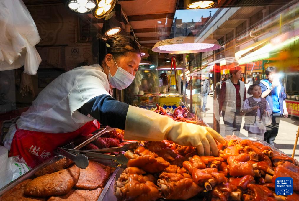 1月27日,一名摊主在昆明大观篆新农贸市场内售卖卤味。