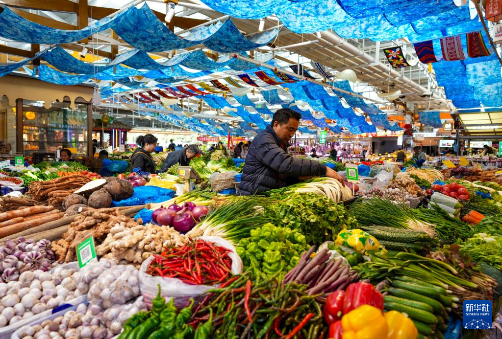 1月27日,人们在昆明大观篆新农贸市场内游览、购物。