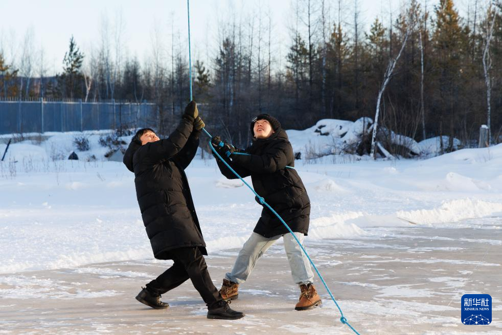 1月25日,漠河站站长施胜浦在活动室打乒乓球。活动室配备了发球机,方便站里只有一人值守时活动。