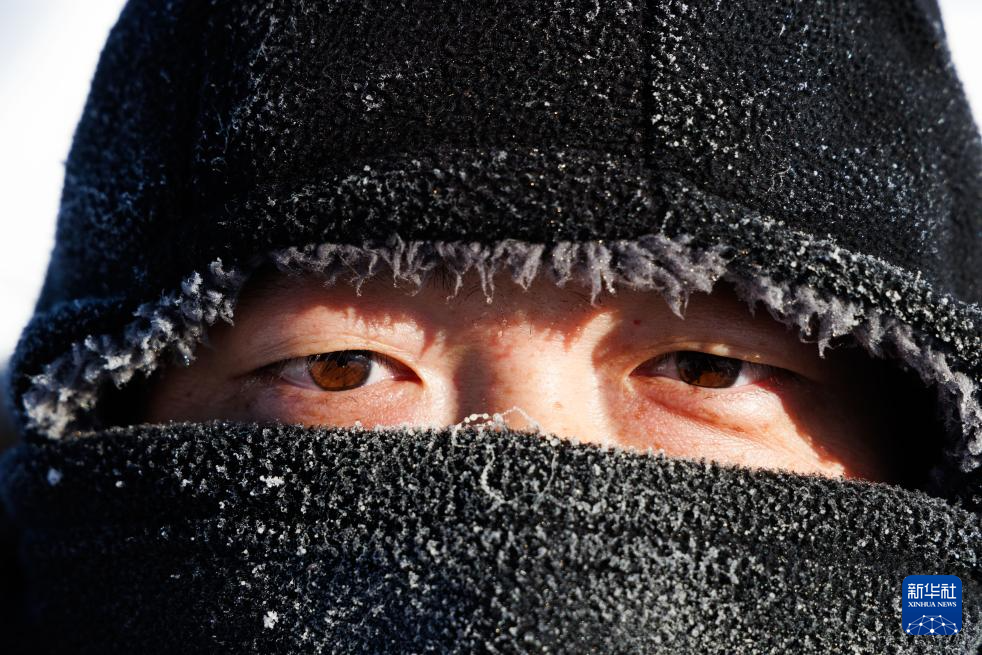 1月25日,户外作业不久,漠河站的工程师李强的帽子已凝结白霜。