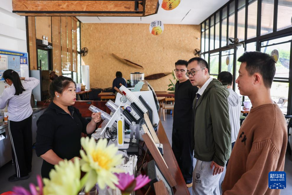 1月27日,顾客在海南定安县富文镇的九所会客厅水塔咖啡馆里点单。