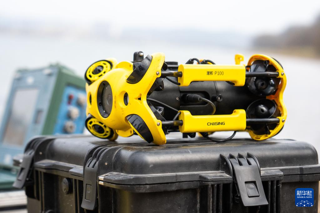 这是1月29日在沪昆高铁湘江特大桥下拍摄的一台水下机器人。