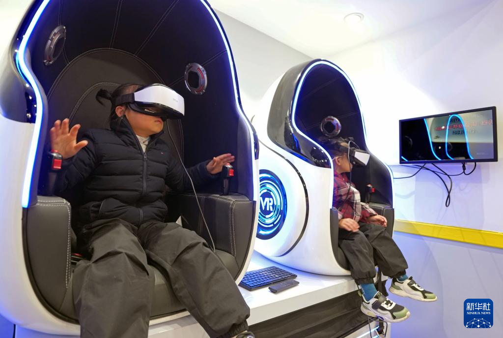 2月2日,在上海市普陀区长征镇办班点,寒托班的小学生参与VR安全模拟,了解地震知识。