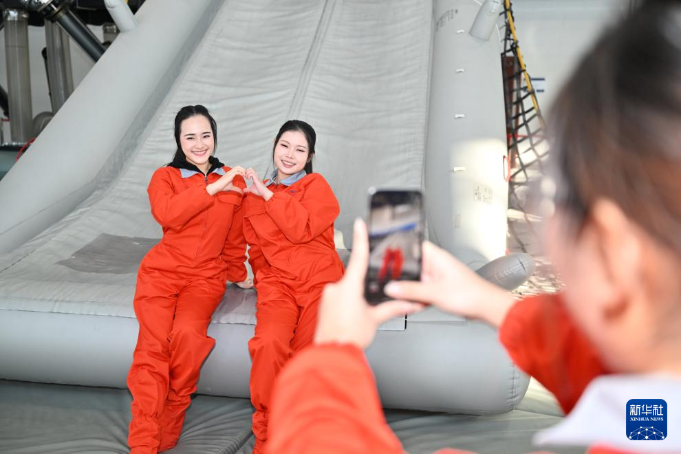 在中国民航大学,泰国学员黄雅仪(左)与同学在课间相互拍照留念(1月20日摄)。