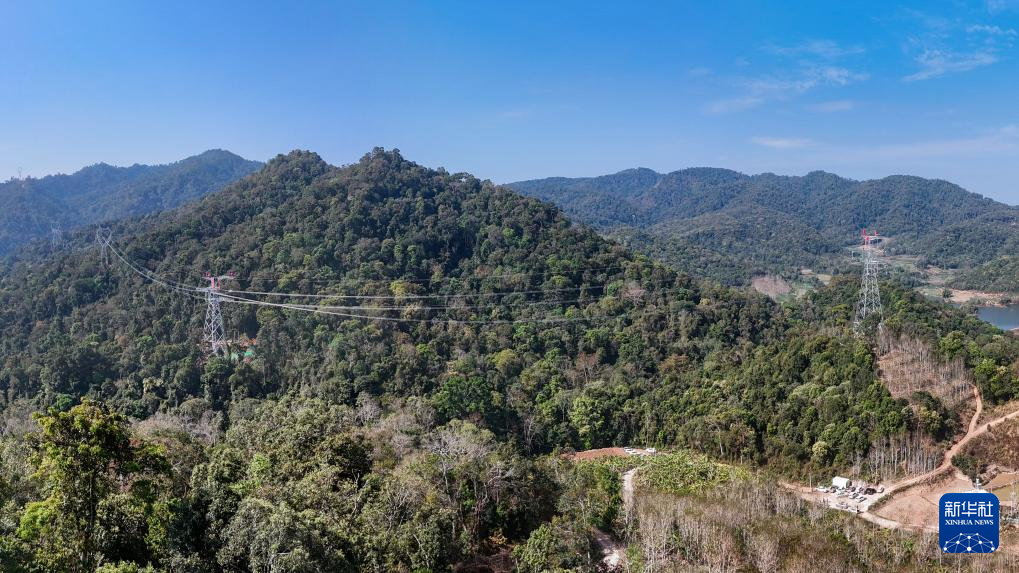 2月5日拍摄的输电导线跨国连通处(无人机全景照片)。