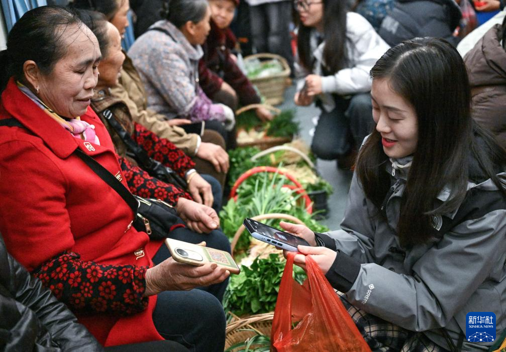 2月8日,村民在5640次“慢火车”上售卖自家种植的蔬菜。