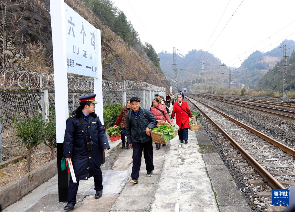 2月8日,村民在六个鸡站进站候车,准备乘坐5640次“慢火车”外出卖菜。