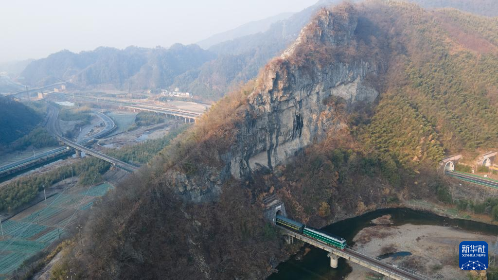 这是2月8日在安徽省宣城市绩溪县扬溪镇拍摄的皖赣线(无人机照片)。