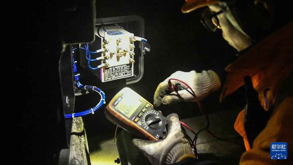 2月10日,在钦州港,一名铁路信号工测试信号机。