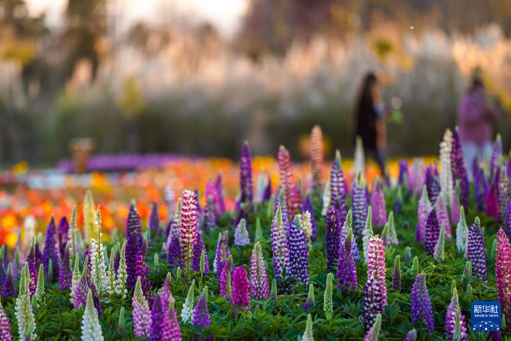 2月10日,市民、游客在昆明市呈贡区的七彩花海公园游玩。