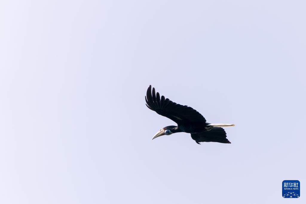 2月7日,犀鸟飞过盈江县太平镇石梯村上空。