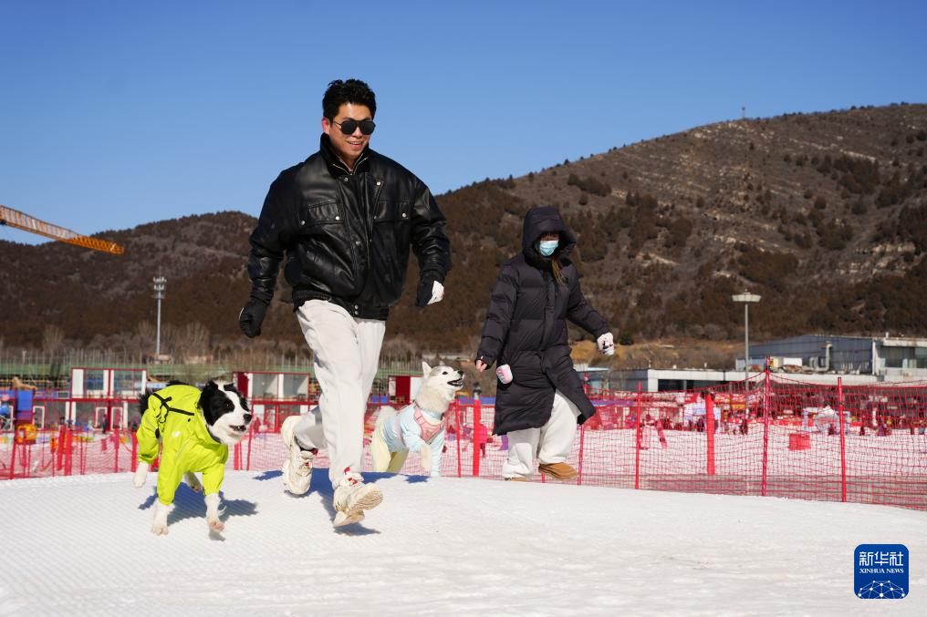 2月7日,在北京渔阳·宠趣里宠物滑雪主题乐园,主人引导宠物狗越过雪坡,体验“雪地障碍挑战赛”项目。据“宠趣里”乐园负责人介绍,乐园自2025年12月22日开放以来,已累计接待近千只宠物狗。