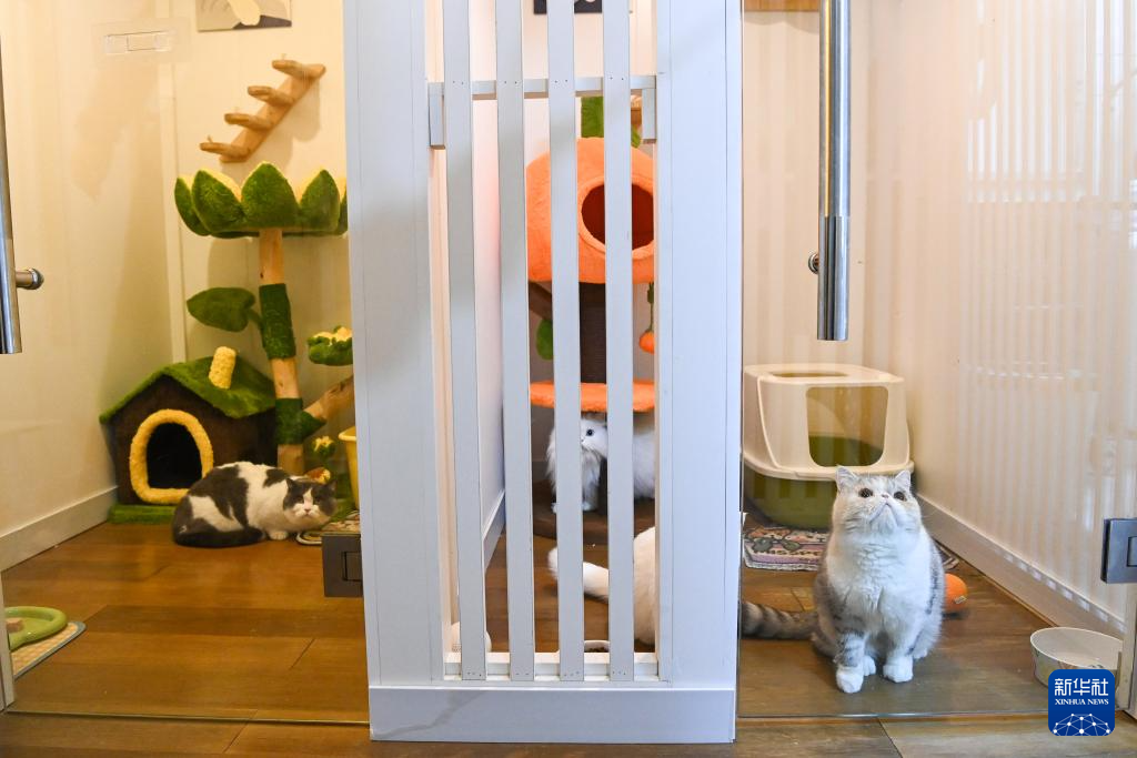 这是2月2日在广西南宁一座写字楼内拍摄的宠物寄养店的猫舍。