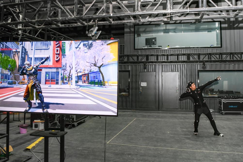 重庆永川科技片场拍摄的实时动作捕捉技术演示现场。新华社记者 王全超 摄