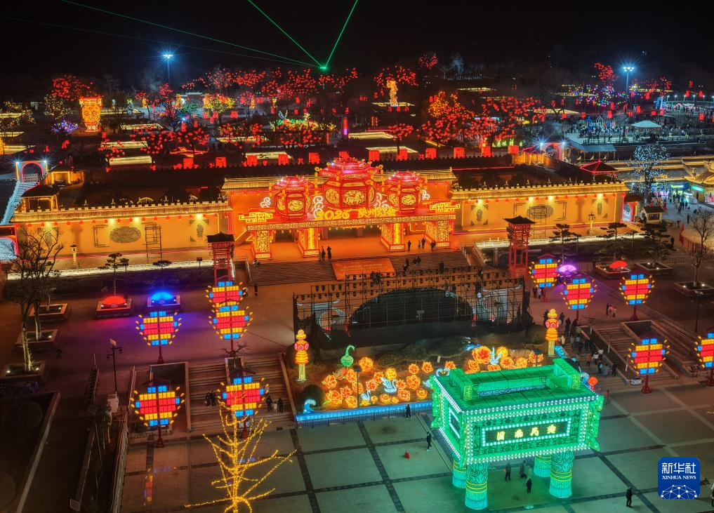 2月12日,游客在第九届陕州灯会现场赏灯(无人机照片)。
