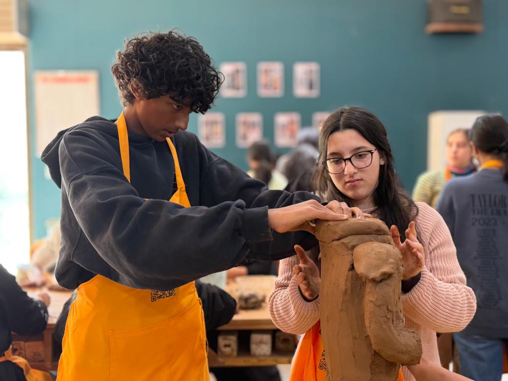 角落里,一个少年忽然举手:“老师,快来帮帮我,我的‘兵马俑’快塌了!”韩咪快步上前,帮他把泥条扶正、收窄、压实。