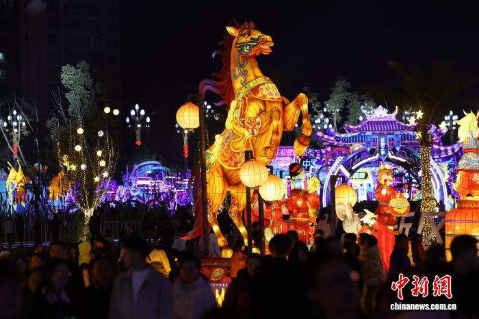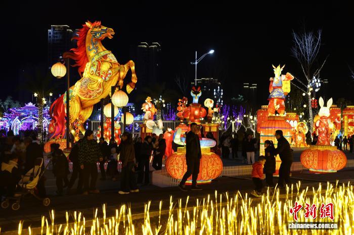 2月13日,2026四川达州首届新春彩灯游园会吸引游人。中新社记者 张浪 摄