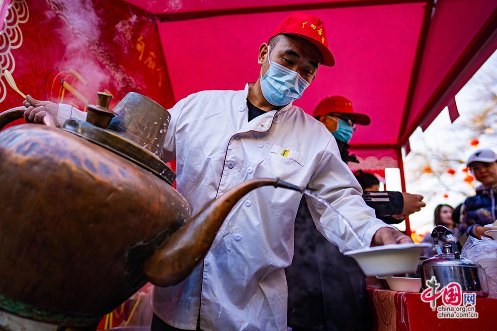 庙会上,炸灌肠、茶汤等地道京味小吃让游客在畅享文化盛宴的同时也能大饱口福。中国网记者 郑亮摄