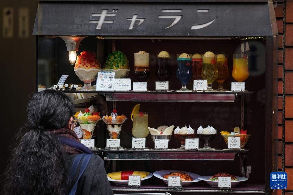 2月20日,在日本东京,行人在一家餐厅门口查看餐品价格。