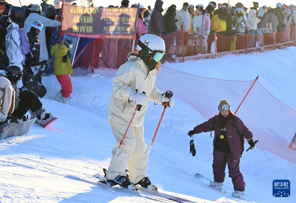2月25日,滑雪爱好者在新疆阿勒泰将军山国际滑雪度假区滑雪。