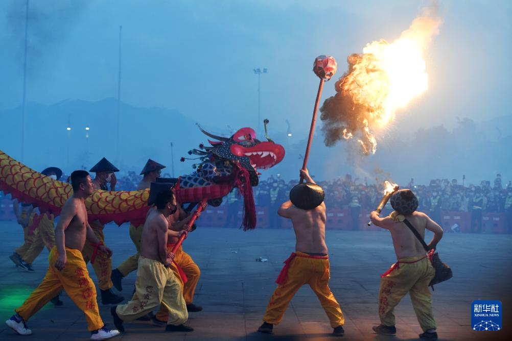 广西宾阳:舞炮龙 庆新春