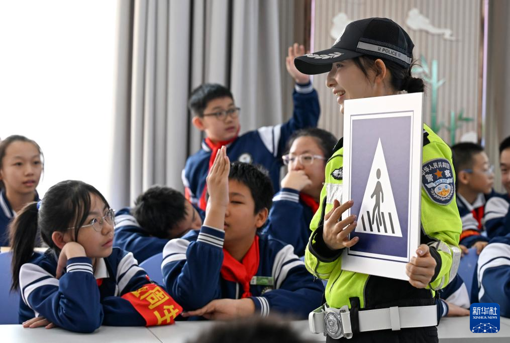 3月2日,在新疆教育学院实验小学,乌鲁木齐市公安局交通管理支队开展交通安全宣讲进校园活动。