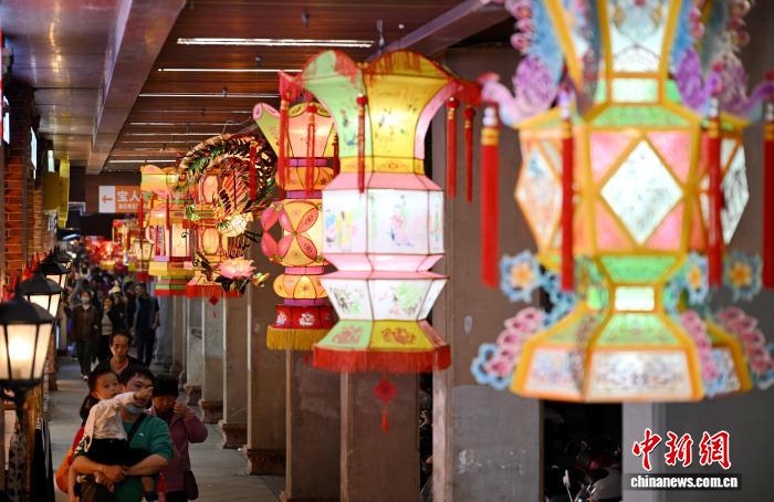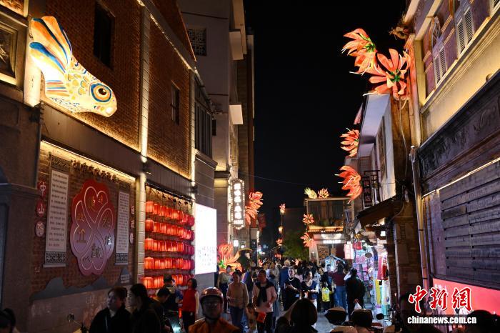 3月2日晚,市民和游客在福建泉州古城区游览、赏灯。元宵将至,彩扎灯、针刺灯、刻纸灯、料丝灯等逾2000盏花灯将泉州古城装点得流光溢彩、美不胜收。中新社记者 吕明 摄
