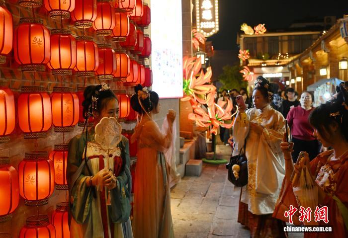3月2日晚,市民在福建泉州古城区游览、赏灯。元宵将至,彩扎灯、针刺灯、刻纸灯、料丝灯等逾2000盏花灯将泉州古城装点得流光溢彩、美不胜收。中新社记者 吕明 摄