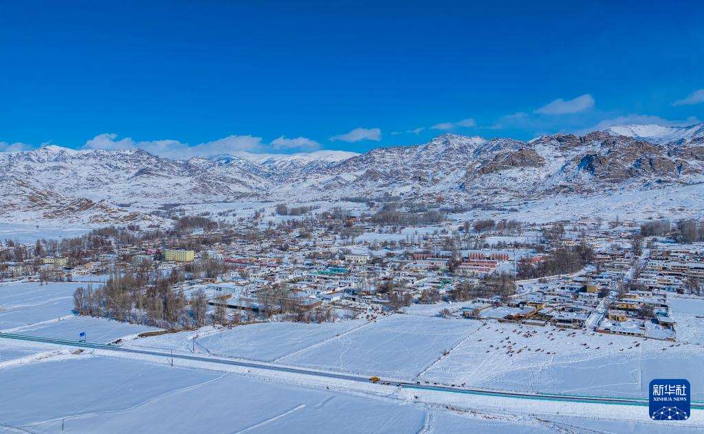 这是2月24日拍摄的新疆阿勒泰市汗德尕特蒙古族乡汗德尕特村(无人机照片)。