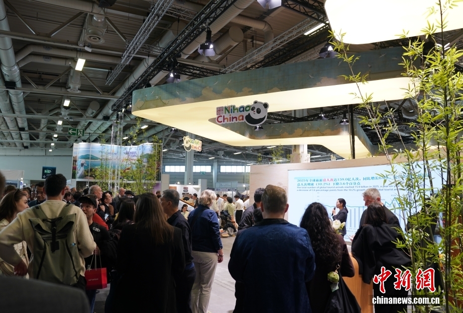 当地时间3月3日,2026年柏林国际旅游交易会(ITB)在柏林会展中心开幕。在中国文化和旅游部组织下,由中国驻法兰克福旅游办事处主办的“你好!中国”展区,汇聚了15个省区市文旅部门、相关旅游企业以及中国驻德航空公司、移动通讯公司的100余名中国代表。图为当日中国展区受关注。