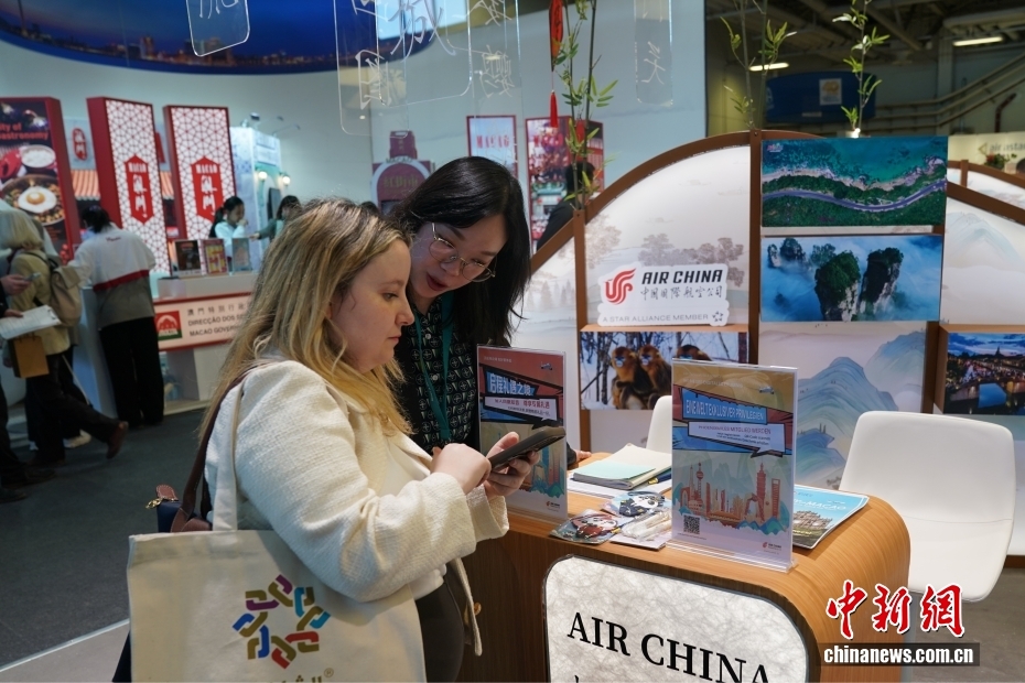 当地时间3月3日,2026年柏林国际旅游交易会(ITB)在柏林会展中心开幕。在中国文化和旅游部组织下,由中国驻法兰克福旅游办事处主办的“你好!中国”展区,汇聚了15个省区市文旅部门、相关旅游企业以及中国驻德航空公司、移动通讯公司的100余名中国代表。图为当日观众在中国国际航空公司展台咨询。