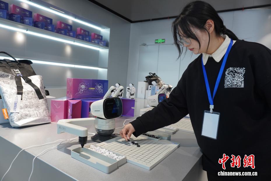 3月4日,河南郑州,中原异构人形机器人4S店吸引观众参观,这是河南首家人形机器人4S店。该店不仅展示与销售全球主流人形机器人产品,还提供租赁、专业维护保养以及基于场景的定制化解决方案,大大降低用户的使用门槛与风险。图为工作人员与机器人下棋。