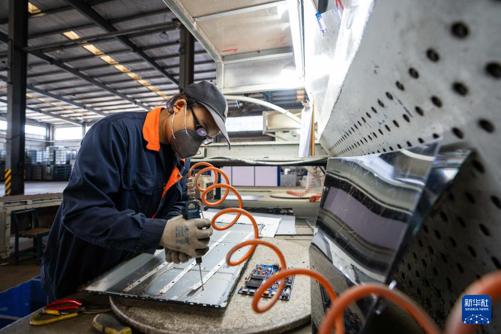 工作人员在湖南省岳阳市汨罗市的汨罗万容固体废物处理有限公司拆解旧电视(2024年9月25日摄)。